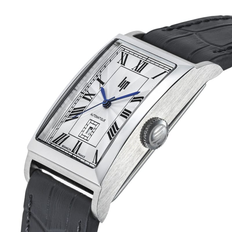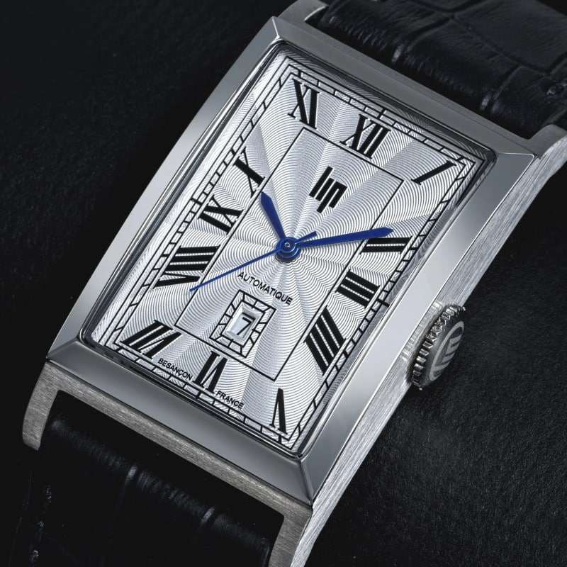 Jusqu’à présent uniquement disponible en version quartz, le modèle rectangulaire iconique de la célèbre marque française est désormais disponible avec un mouvement automatique. Présentée sur un cadran « Churchill » avec son double rayon de soleil vertical-horizontal caractéristique, la T26 donne l’heure via des aiguilles métalliques noires facettées.
