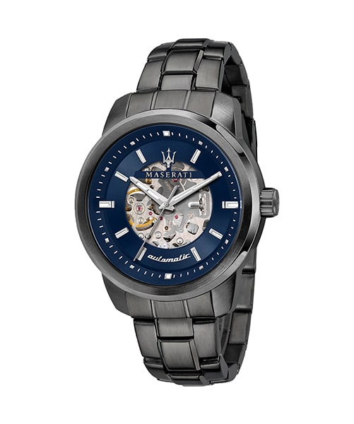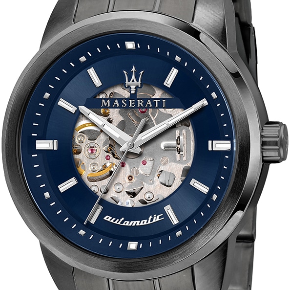 Au centre du cadran, on retrouve une ouverte squelette laissante apparaitre la sublime mécanique du mouvement automatique japonais de la montre MASERATI SUCCESSO BLUE. Car il s’agit bien d’une montre à mouvement automatique, accumulant l’énergie des mouvements de votre poignet pour alimenter la course inlassable des aiguilles. Le verre MINERAL protège le cadran et offre une résistance à l’eau jusqu’à 5 ATM.