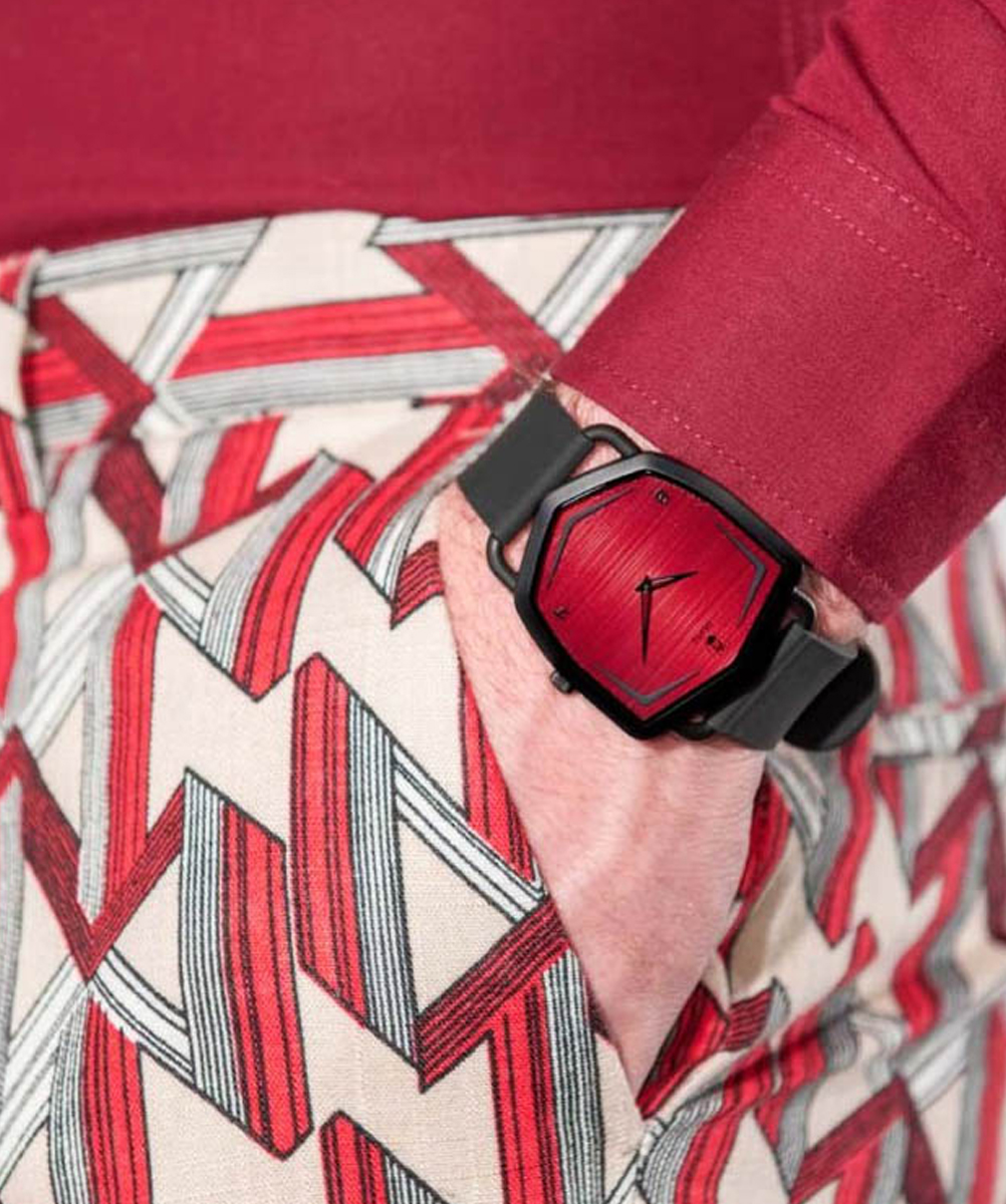 Elle se distingue principalement par sa couleur Rouge vif et l’alternance entre Noir et Rouge. Sa finition donne une impression mate et 3D et offre un cadran très profond. Deux aiguilles centrales « dauphines », dont le traitement Superluminova permet de voir dans des environnements clairs et sombres, traversent nonchalamment ce cadran pour vous servir les heures et les minutes. Des chevrons marquent les angles du cadran et donnent une touche moderne et masculine à l’ensemble.