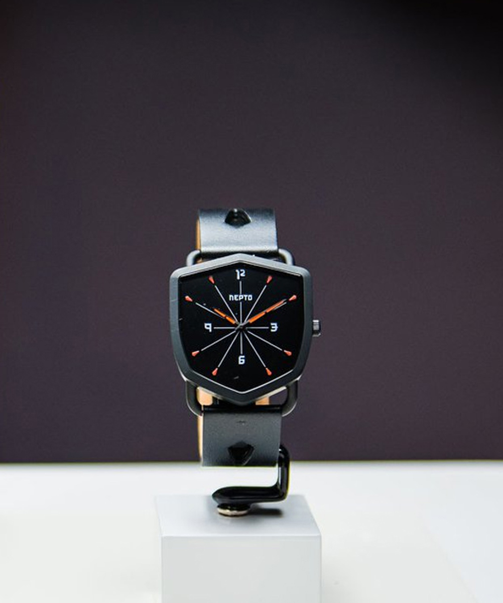 Inspirée d’un ancien modèle Raketa, cette montre de 40 mm présente un cadran noir raffiné et deux aiguilles centrales « glaive », avec un traitement Superluminova qui permet de voir aussi bien dans les environnements lumineux que dans l’obscurité. Elles traversent nonchalamment ce cadran pour vous servir les heures et les minutes.