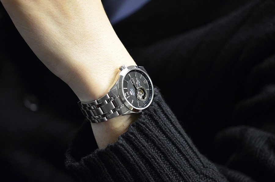 La nouvelle Orient Golden Eye AG03001B conserve un verre saphir, réputé inrayable, ainsi que son étanchéité à 50 mètres.