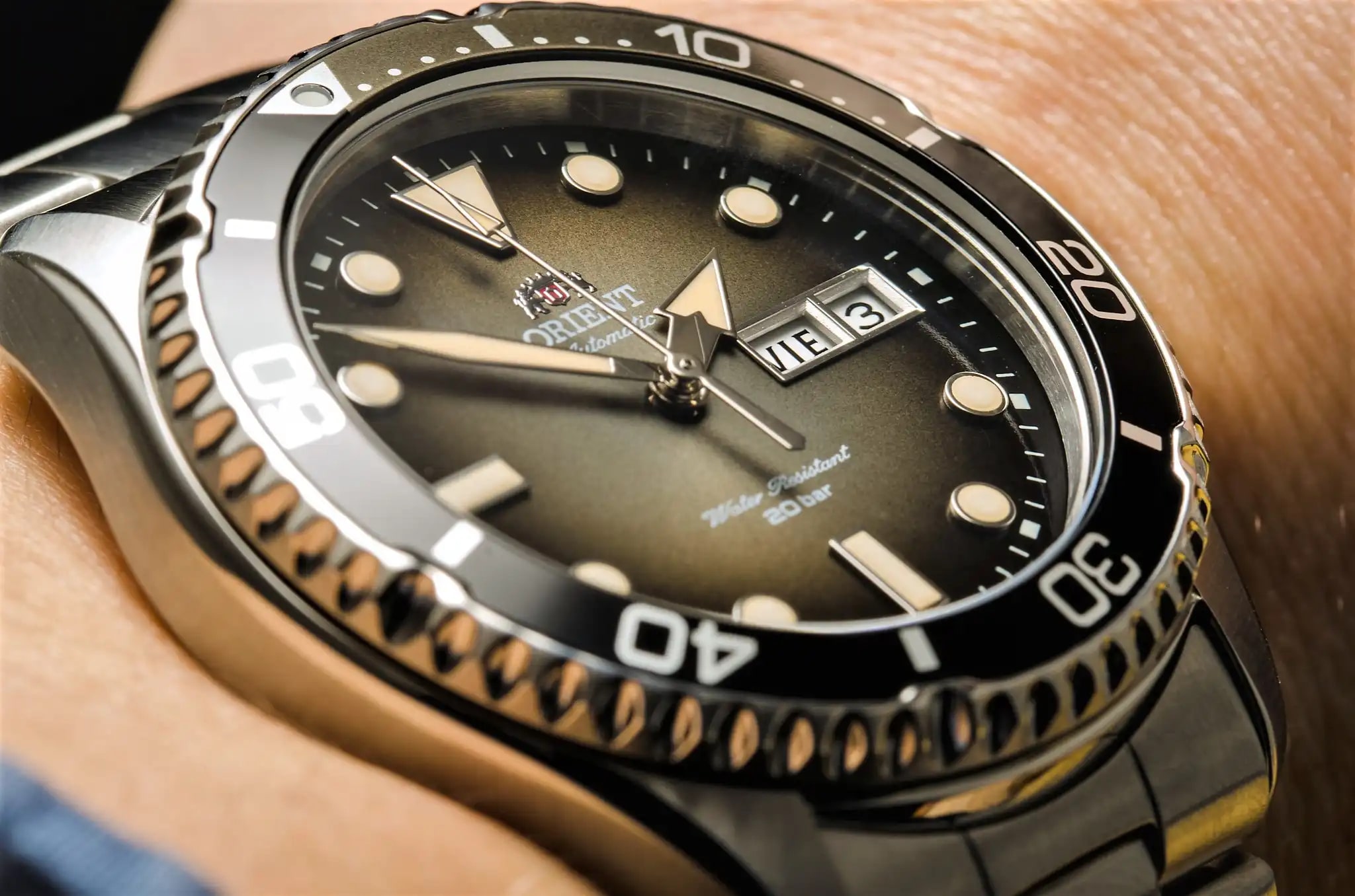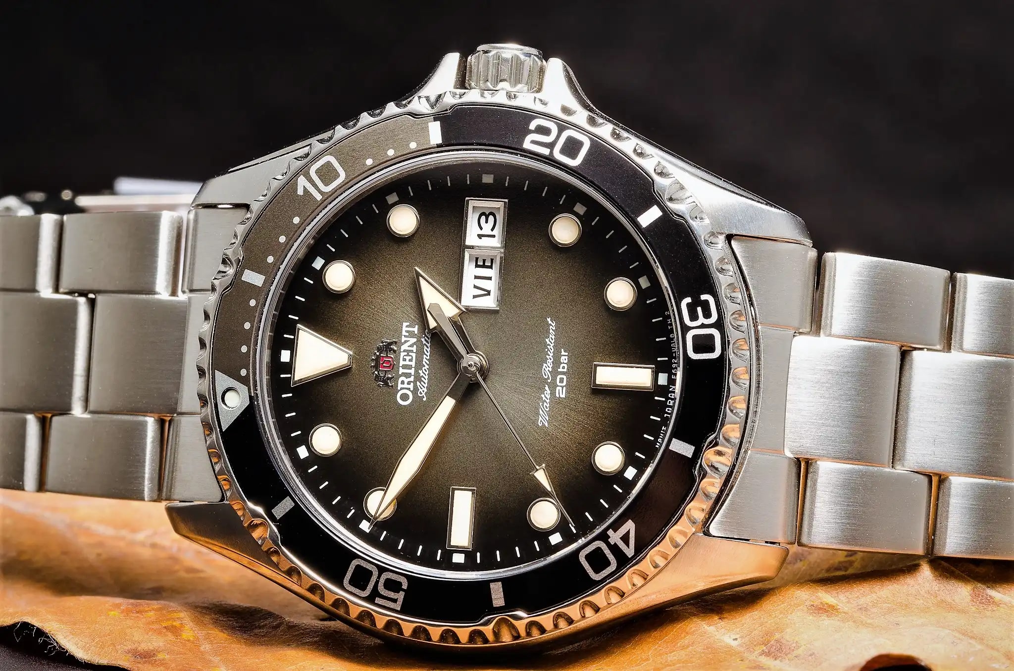 Possédant les mêmes qualités que sa consœur (indicateur de jour/date, lunette unidirectionnelle, construction solide, 200 mètres d’étanchéité), l’ Orient Kamatsu fait partie de la catégorie « Divers Watch » comprenez « plongeuse » de la marque filiale de Seiko.