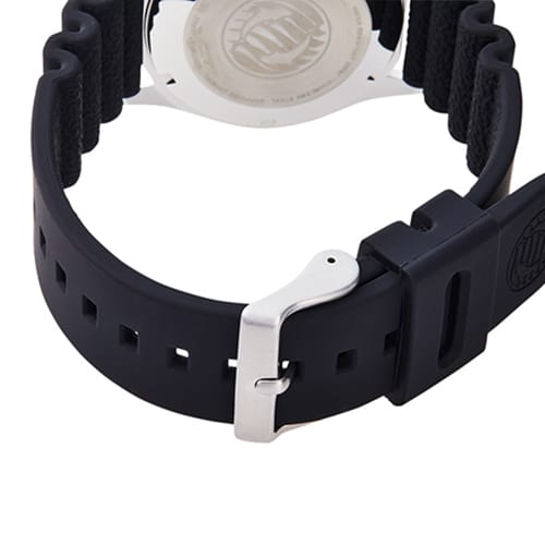 Un détail marque cependant la différence avec la Mako, celui-ci se trouve sur l’indication horaire : les chiffres arabes remplacent les formes géométriques de l’Orient Ray, et sont recouverts de LumiBrite – un matériau phosphorescente – rendant l’heure lisible dans les recoins les plus sombres…