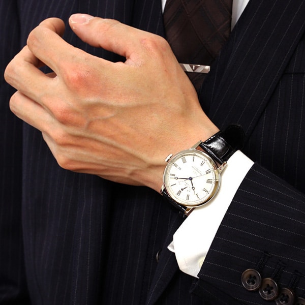 Verre en dôme, aiguilles courbées, indicateur de réserve de marche et date à 3 heures s’emboîtent ici avec élégance et perfection.