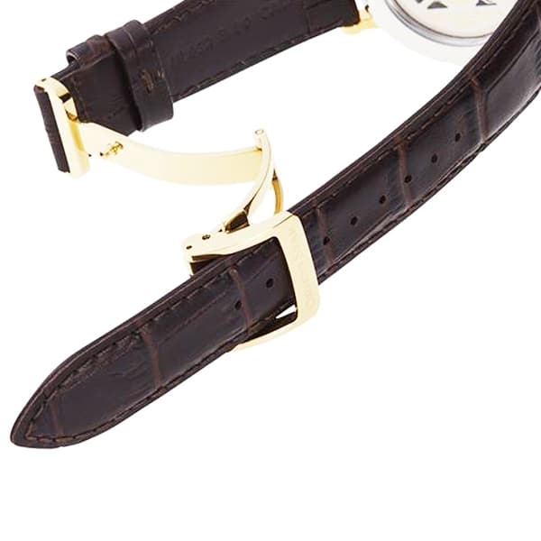 Son cadran blanc est quant à lui assorti à un bracelet marron. Cette finesse et ce sens du détail se retrouvent également avec grand art à deux endroits bien distincts ; la couronne est gravée du logo Orient Star ainsi que la masse oscillante, que l’on peut observer au dos de la montre, où y est inscrit le nom de la marque, son logo et son origine : le Japon.