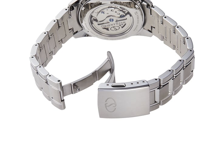 - Couronne, masse oscillante et fermoir gravé du logo « Orient Star»