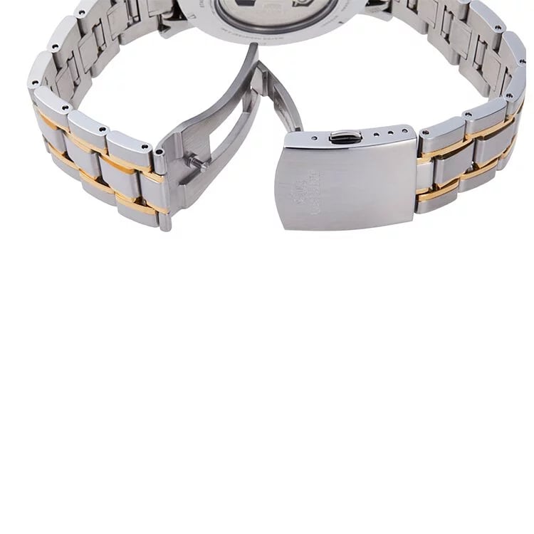 Doté d’un cadran blanc des plus somptueux, contrastant de manière insistante avec le doré des aiguilles et index, le boitier de cette Orient Sun and Moon Skeleton recèle de détails élogieux…