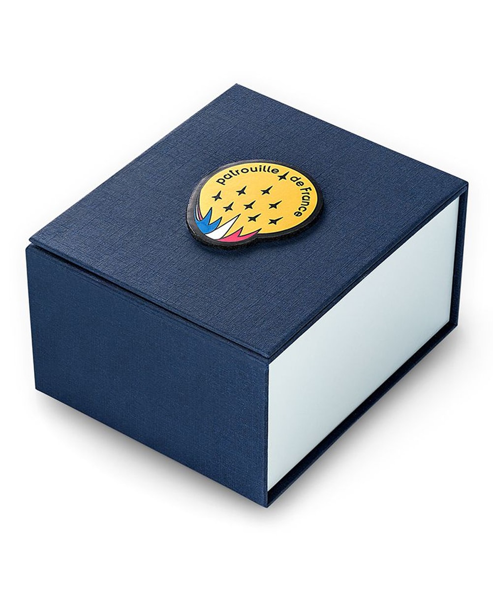 Le bracelet en acier, gravé du logo emblématique de la Patrouille de France, ajoute une touche de sophistication à cette montre. Confortable à porter au quotidien.