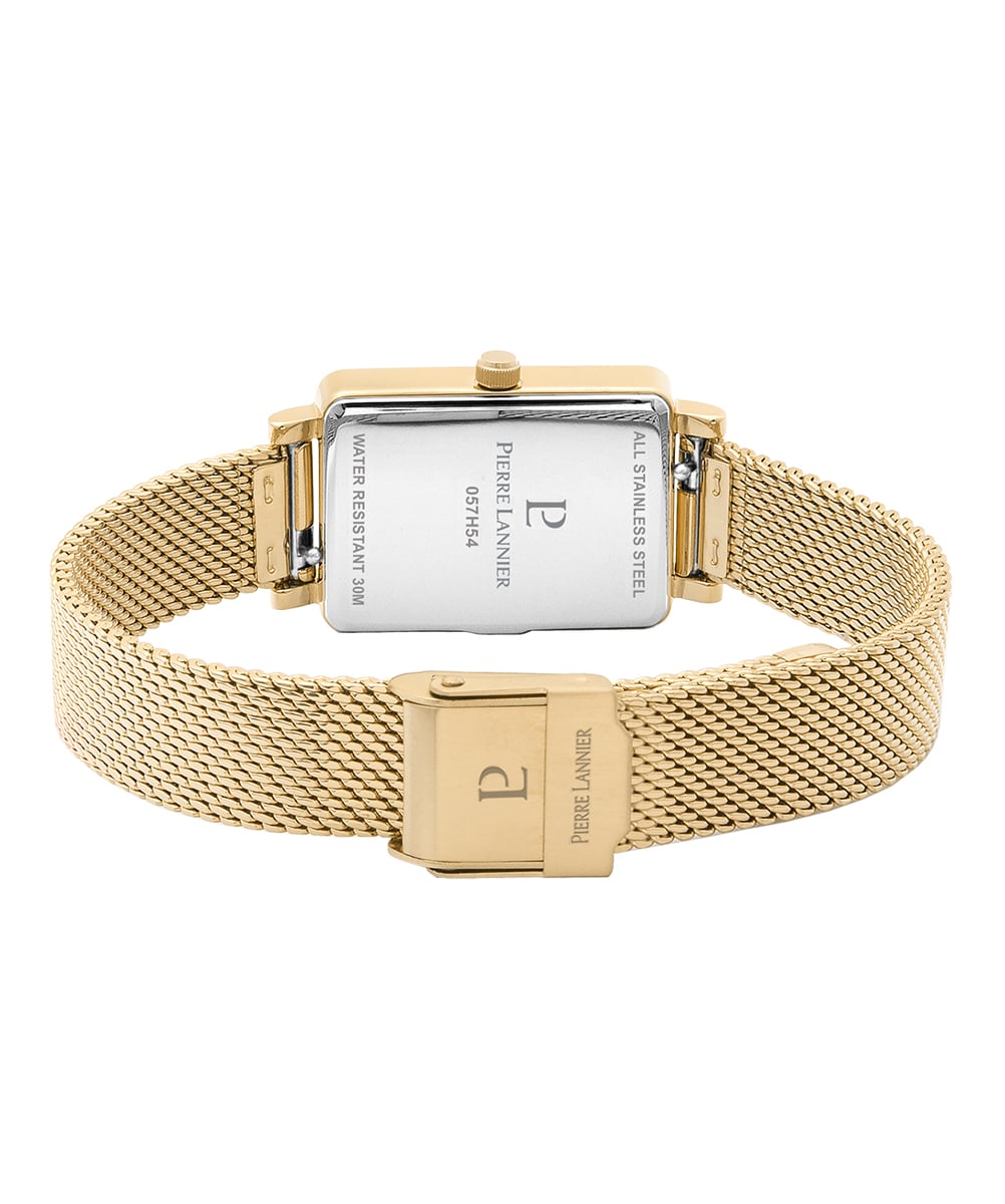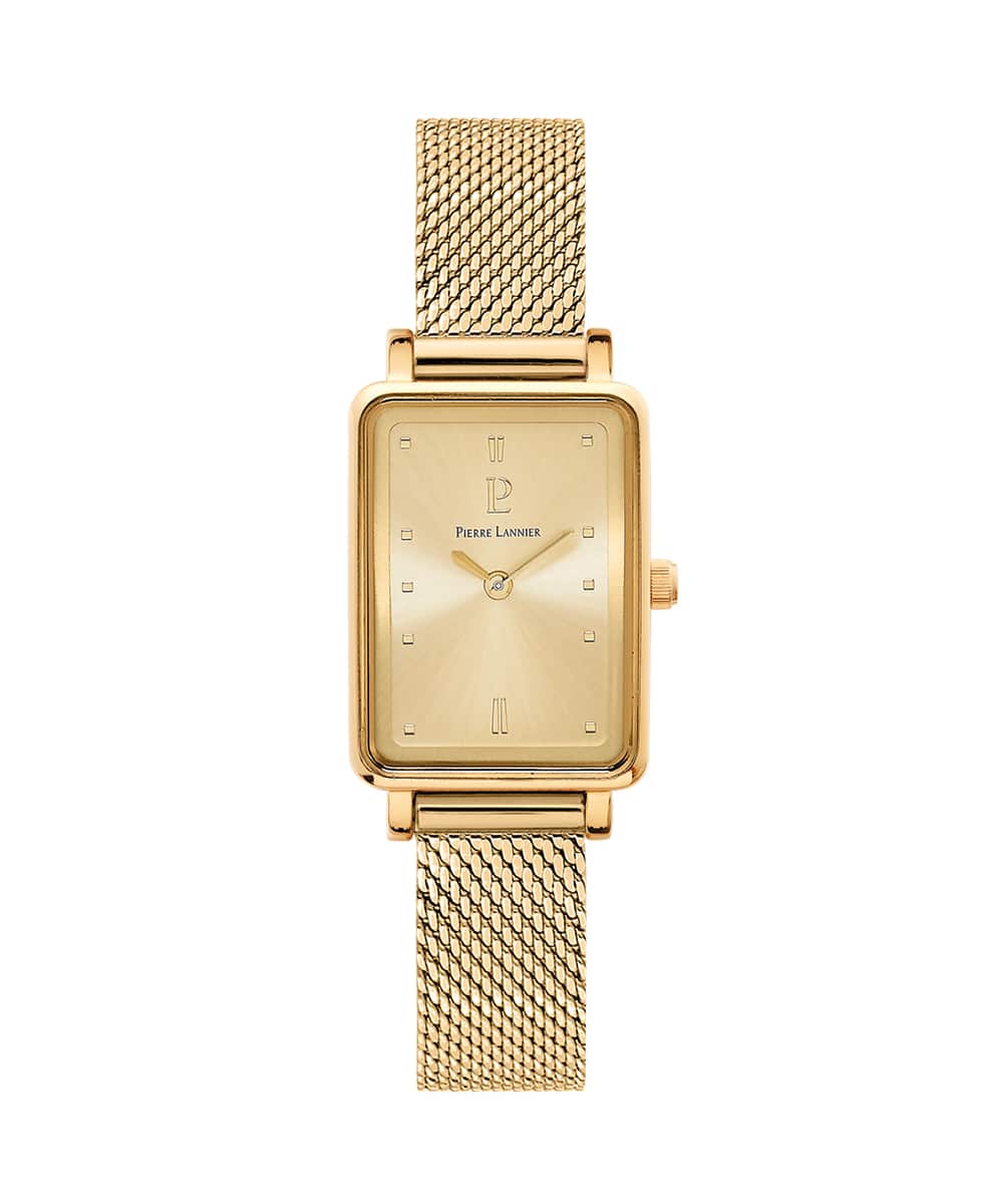 La montre Pierre Lannier ARIANE 057H542 présente un design raffiné avec un cadran doré éblouissant qui capte la lumière de manière subtile. Et les index ajoutent une touche classique et intemporelle à cette pièce, tandis que les aiguilles fines et précises assurent une lecture facile et rapide de l’heure. Ensuite, Son boîtier en acier inoxydable poli confère à la montre une allure sophistiquée, tandis que le bracelet en Acier Milanais doré ajoute une note de confort et d’élégance.