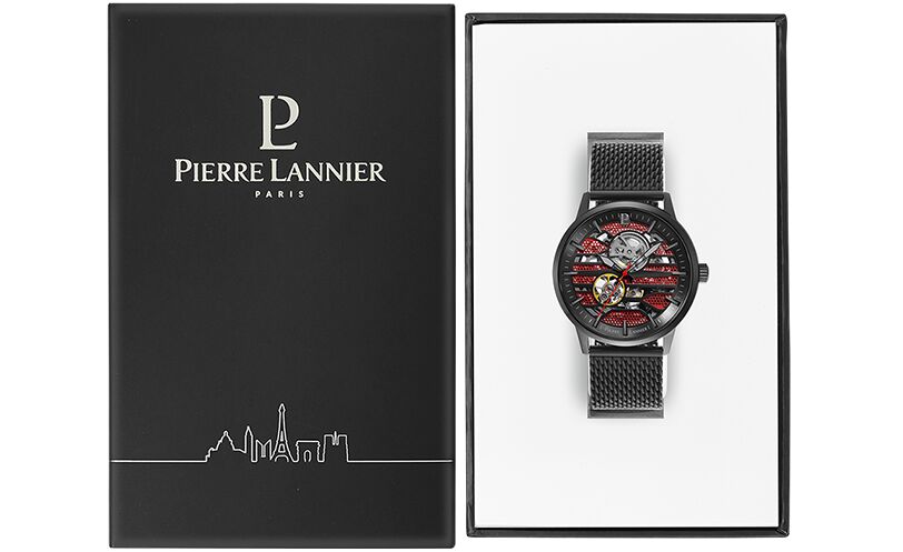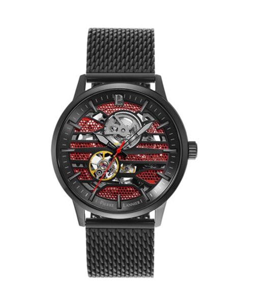 Un mouvement automatique équipe cette montre Pierre Lannier pour homme.