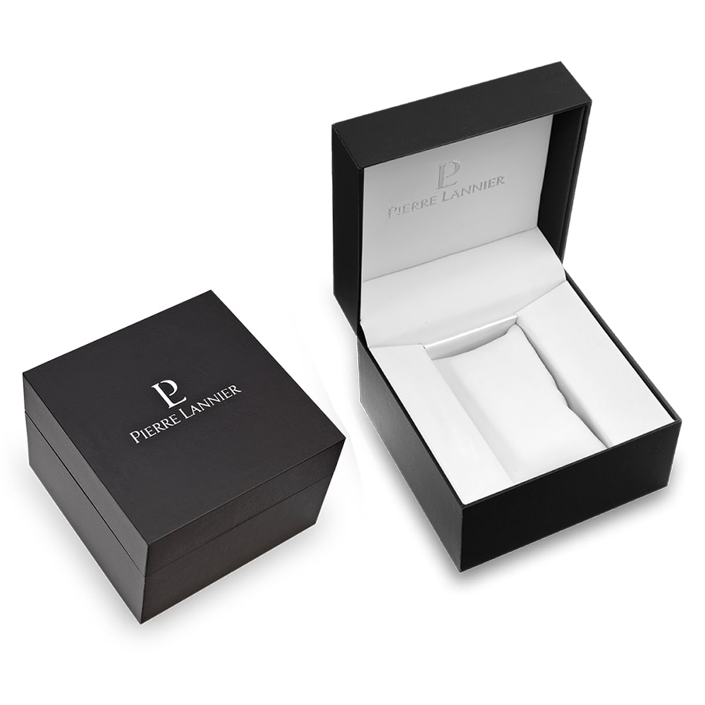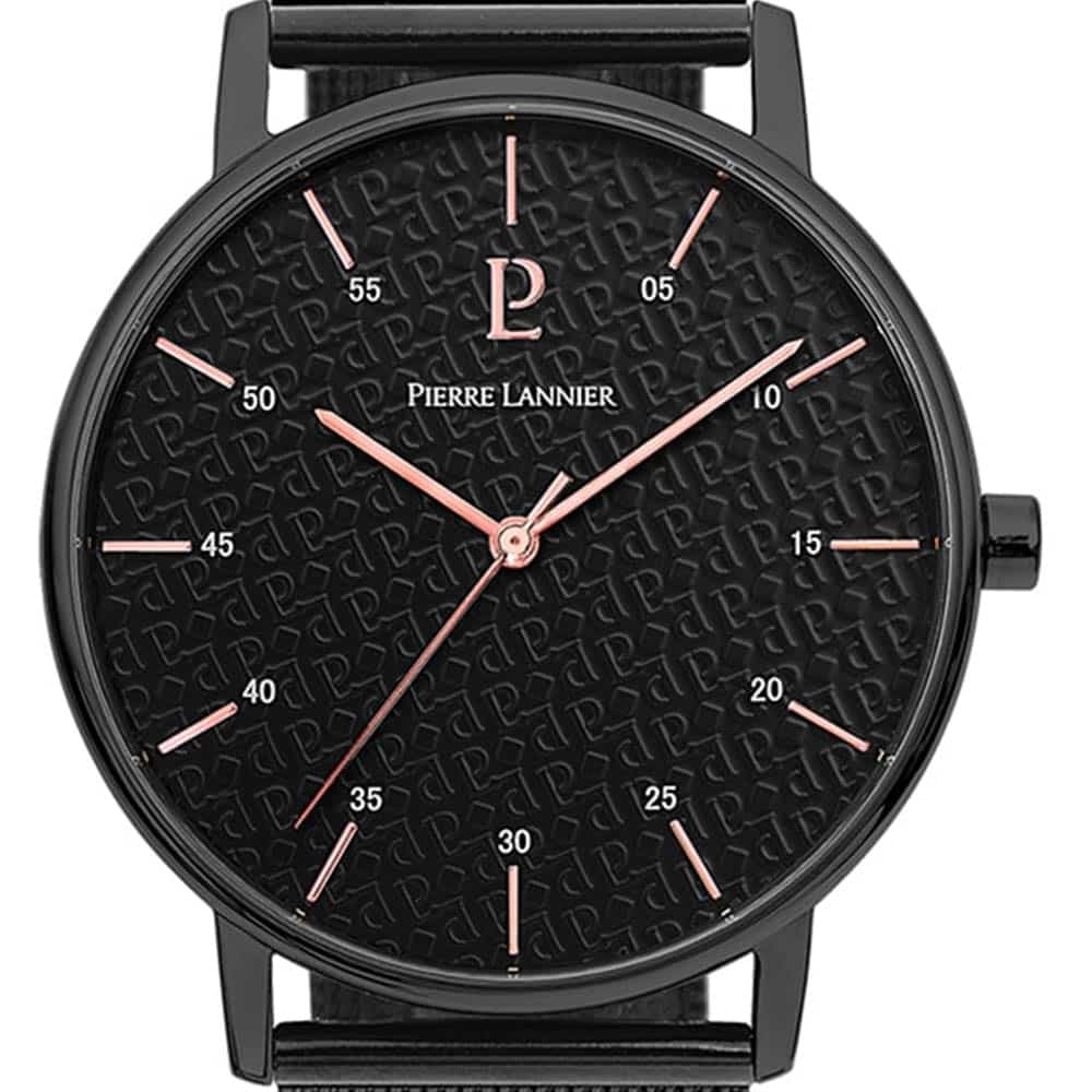 Le logo Pierre Lannier, situé à 12h, confère un charme supplémentaire à ce garde-temps harmonieux et élégant.