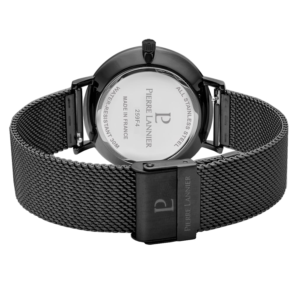 D’ailleurs, c’est cette lunette Noir et le bracelet en maille milanaise qui offrent ici un rendu unique à ce garde-temps. Assorties aux index et à la couronne à 3h, le design et les caractéristiques de cette montre homme Pierre Lannier 259F439 en font un produit rare, qui se porte aussi bien au bureau, en soirée ou dans notre quotidien.