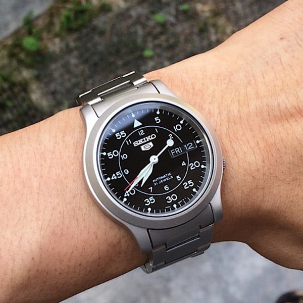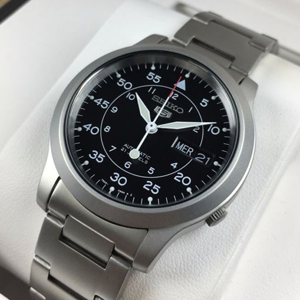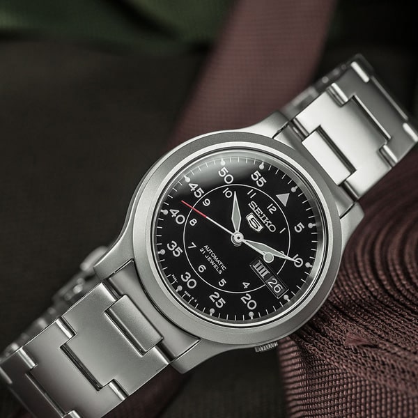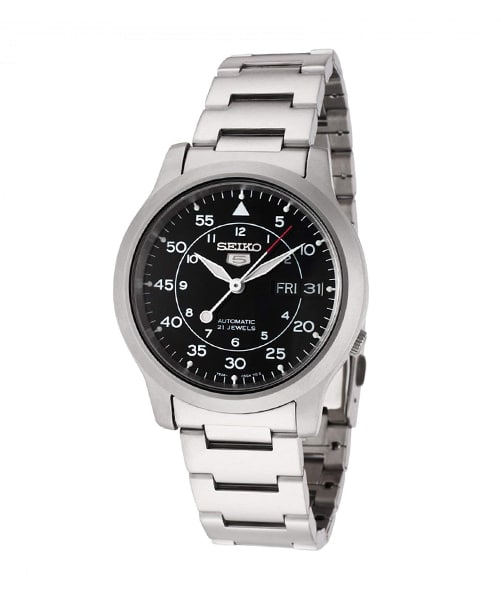 Découvrez cette magnifique SEIKO 5 MILITARY SNK809K1 pour monsieur, au style simple, classe et pratique. Ce garde-temps se caractérise par un boîtier en acier inoxydable rond avec fond de cadran noir, assorti au bracelet en Acier.