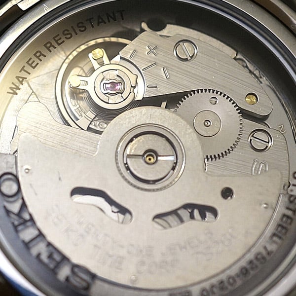 Très présent chez SEIKO, le verre de ce modèle est en Hardlex, matière plus résistible que les classiques verres minéraux que l’on retrouve au sein de modèle entrée de gamme. Le mouvement automatique 21 Jewels est quant à lui très reconnu pour sa fiabilité et sa durabilité.
