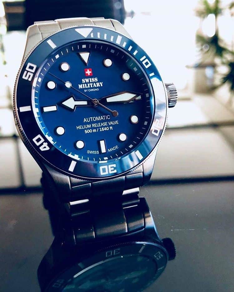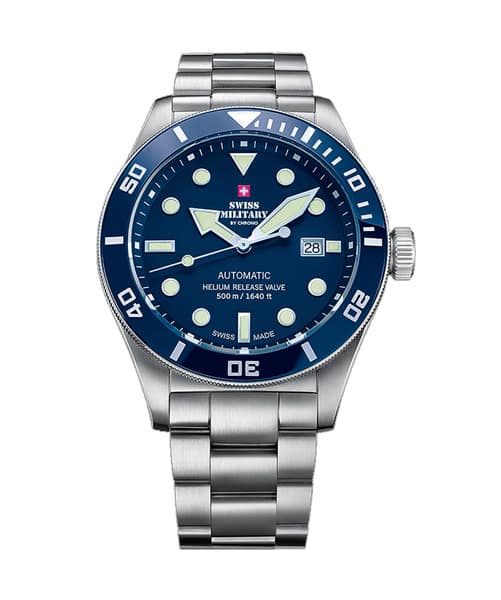 Cette Swiss Military by Chrono Deep Blue SMA34075-02 avec lunette en céramique est un concentré de technologie mécanique adossé à un style et à un design unique. Doté d’un boitier robuste de 14 mm d’épaisseur sur 44 mm de diamètre, et une étanchéité exceptionnelle de 500 mètres, ce garde-temps fera le plaisir des amateurs d’horlogerie fine… Et de plongée sous-marine.