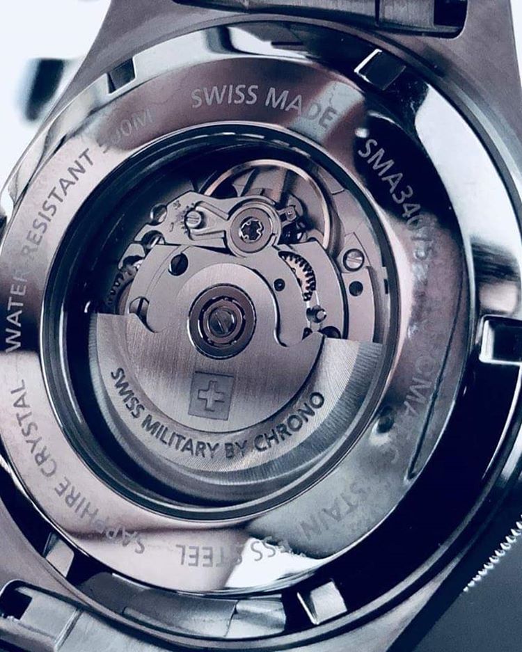 Sous le capot, on retrouve un calibre Suisse 2824-2 provenant de la manufacture ETA. Résistant et précis, il est doté de 25 rubis et offre une réserve de marche d’environ 40 heures.