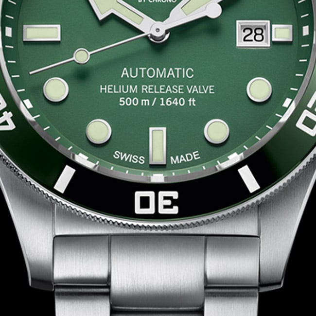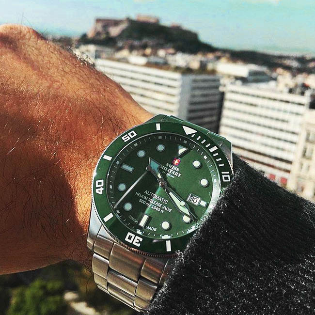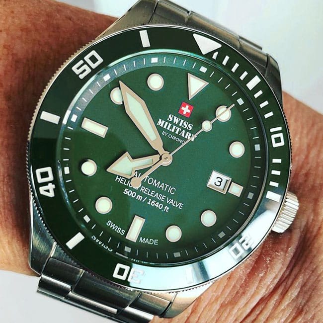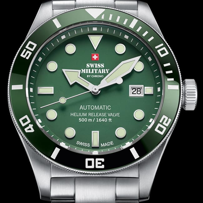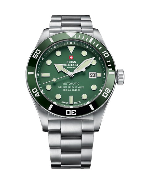Cette Swiss Military by Chrono Deep Green SMA34075-03 avec lunette en céramique est un concentré de technologie mécanique adossé à un style et à un design unique. Doté d’un boitier robuste de 14 mm d’épaisseur sur 44 mm de diamètre, et une étanchéité exceptionnelle de 500 mètres, ce garde-temps fera le plaisir des amateurs d’horlogerie fine… Et de plongée sous-marine.