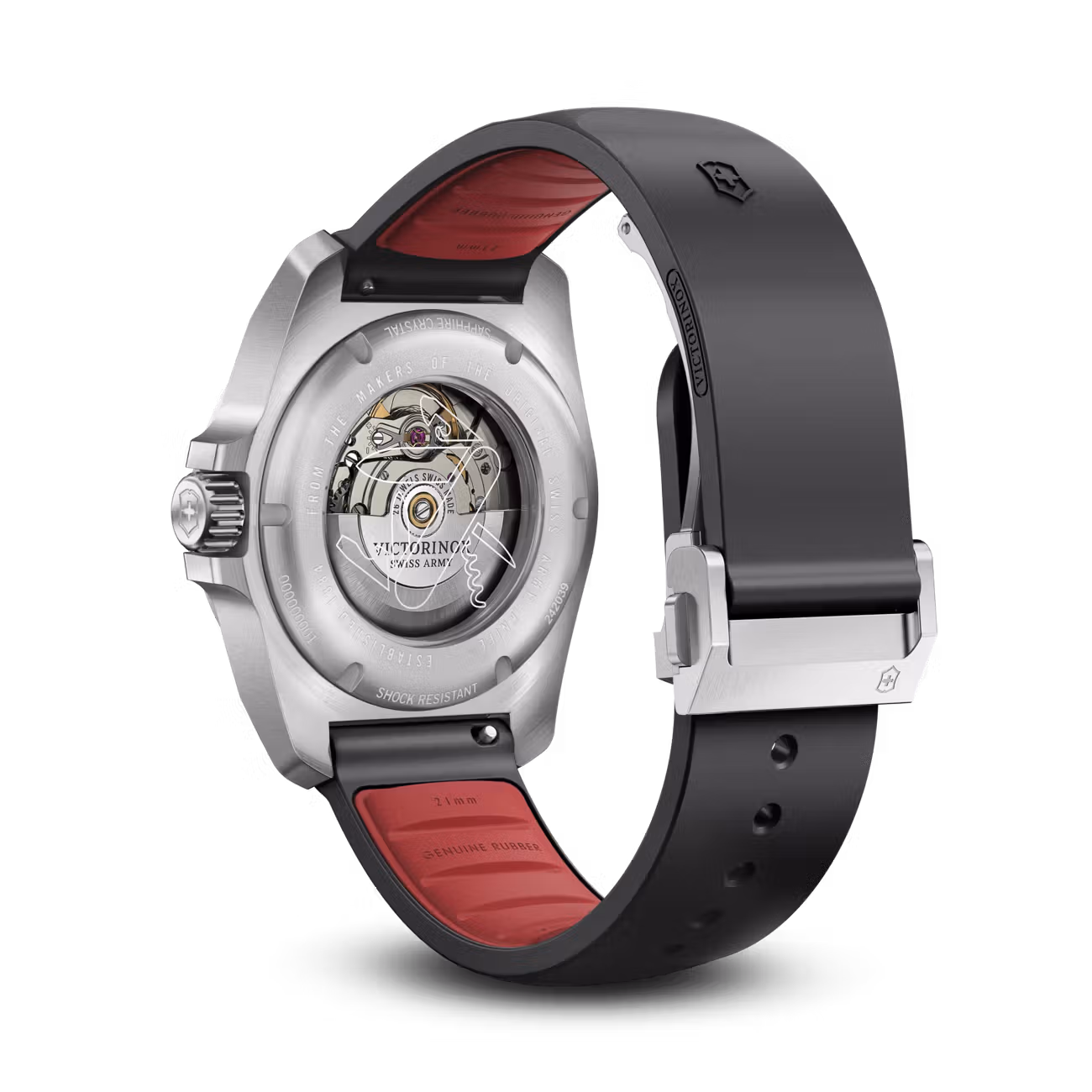 La Victorinox I.N.O.X Automatique 242039 incarne la fusion parfaite entre robustesse et élégance horlogère suisse. Conçue, fabriquée et testée dans l’usine Victorinox de Delémont, en Suisse, cette montre garantit une résistance aux chocs certifiée ISO 1413 et une étanchéité remarquable jusqu’à 200 m, idéale pour affronter toutes les situations.