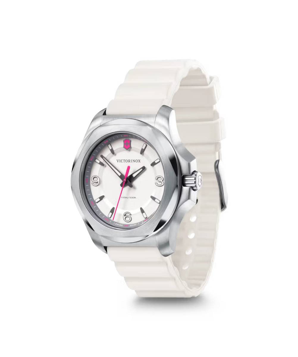 La Victorinox I.N.O.X V Blanc Argent 241921 incarne la robustesse suisse dans un design féminin, épuré et élégant. Conçue pour accompagner les femmes actives au quotidien, elle marie parfaitement résistance, confort et raffinement.