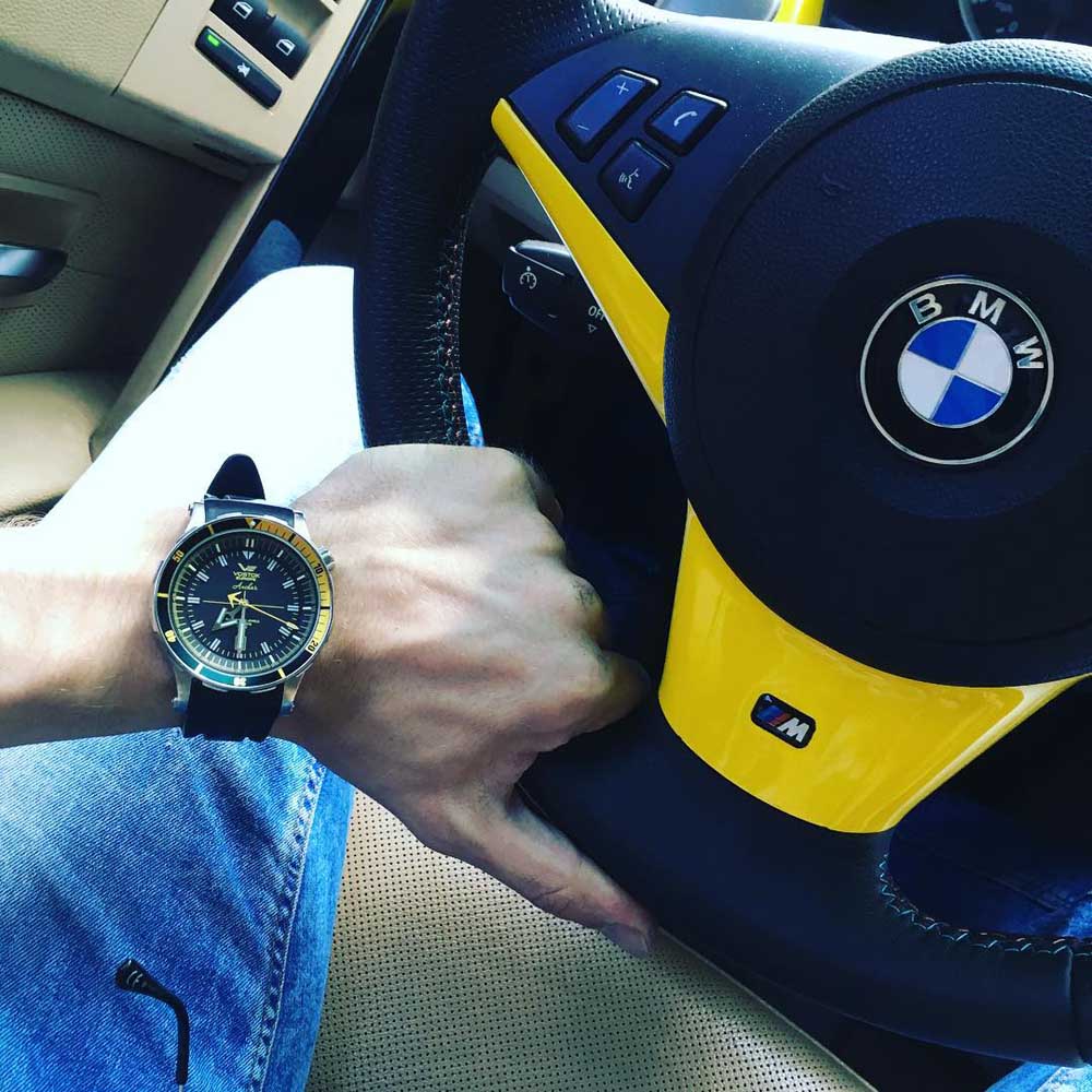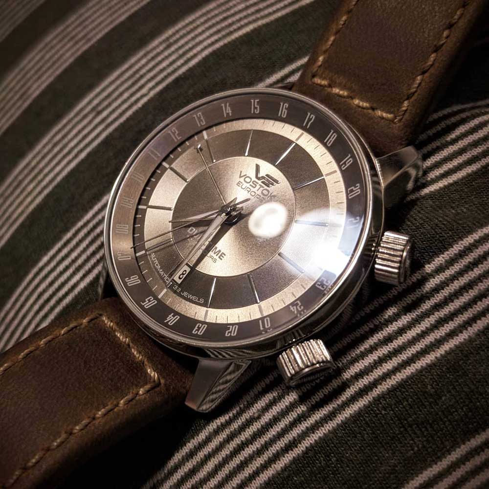 La nuit venue, on appréciera l’extrême lisibilité de cette Vostok-Europe NH35A-5651137 apportée par du Tritium gazeux, un composant non radioactif et non toxique, rendant les index visibles en toute condition.