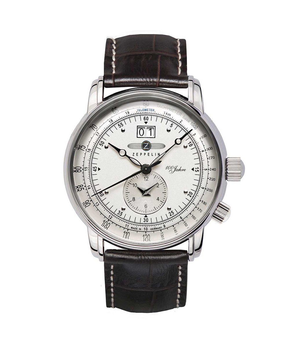 - Arborant un cadran blanc, le modèle 100 Jahre Zeppelin Cuir Marron est équipé d’un verre Minéral garantissant un design original.