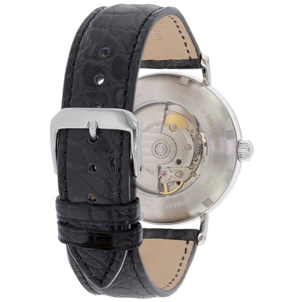 – Le bracelet en cuir noir surpiqué est cousu main en Allemagne. Il garantit une qualité supérieure pour cette pièce souvent négligée par les fabricants.