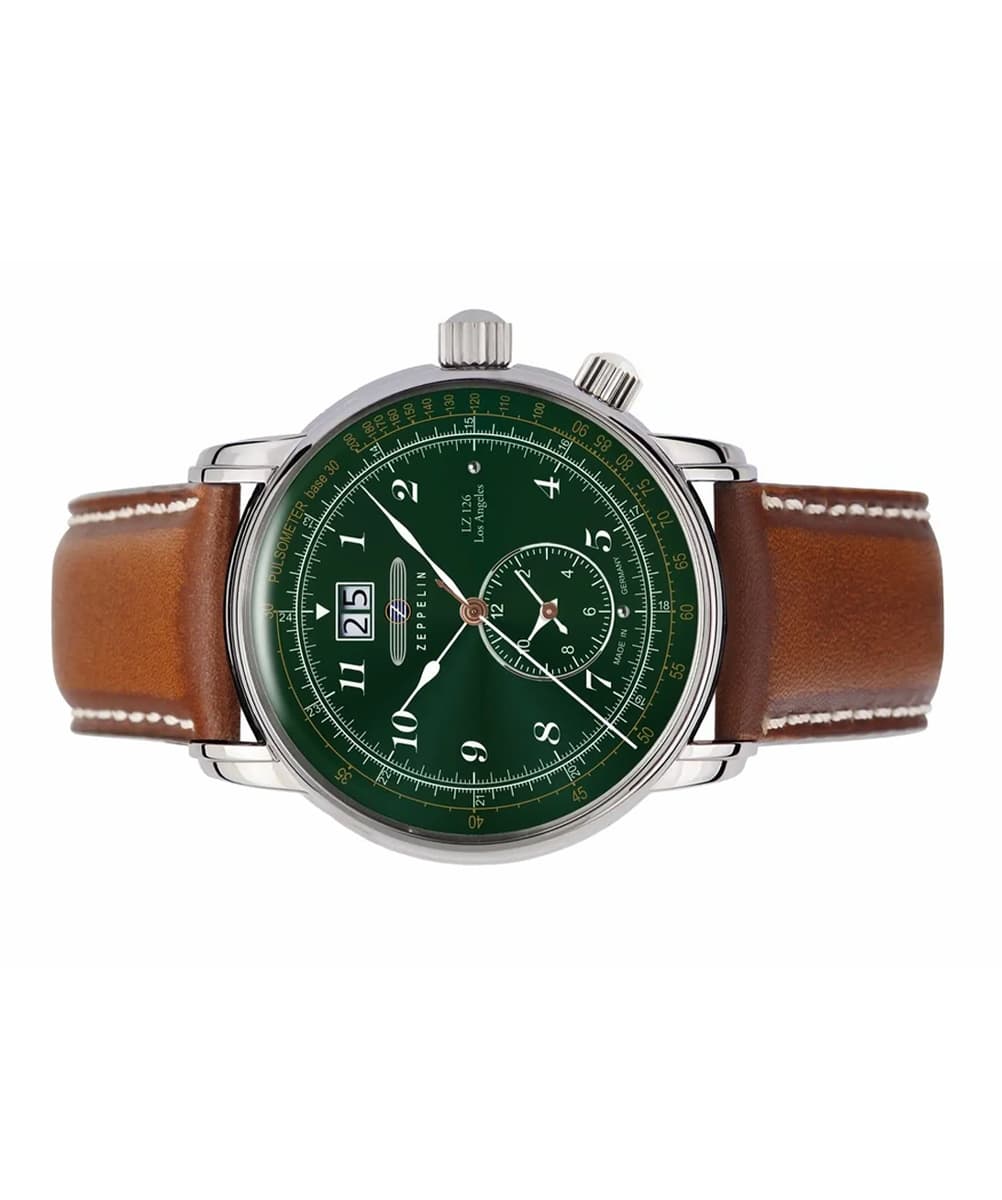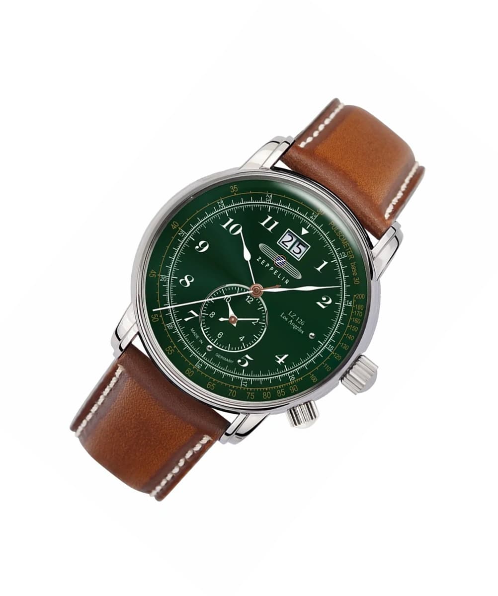 La Zeppelin LZ126 Los Angeles Vert 8644-4 est un modèle iconique de la Maison germanique. Inspiré du premier aérostat à coque solide construit par le fondateur de la marque, ce garde-temps adopte un style Aviateur des plus réussis…