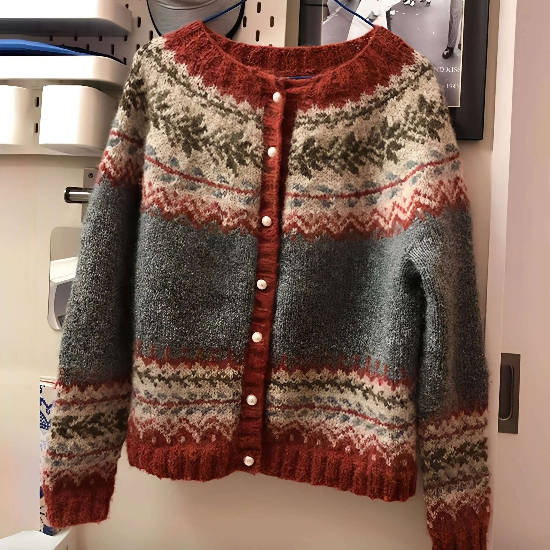 Le cardigan Nicola charme par son allure ethnique captivante, mélangeant des influences scandinaves avec une élégance intemporelle. Les couleurs chaudes et le tissu doux tricoté garantissent un confort exceptionnel, parfait pour les journées fraîches. Que vous le portiez sur un haut basique ou avec un jean, ce cardigan ajoute une note élégante et confortable à chaque tenue.