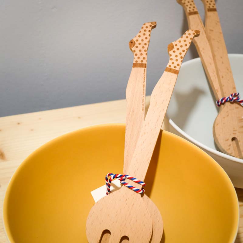 • Conseils d’entretien : avant la première utilisation, lavez et séchez les couverts à salade puis passez-leur une couche d’huile végétale. Ne les laissez pas trempez dans l’eau et repassez-leur de temps à autre une couche d’huile végétale pour les garder en pleine forme.