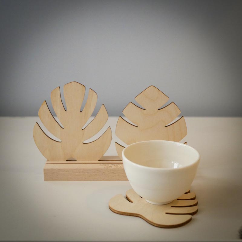 • Sous-verre en CP de bouleau et base en hêtre massif