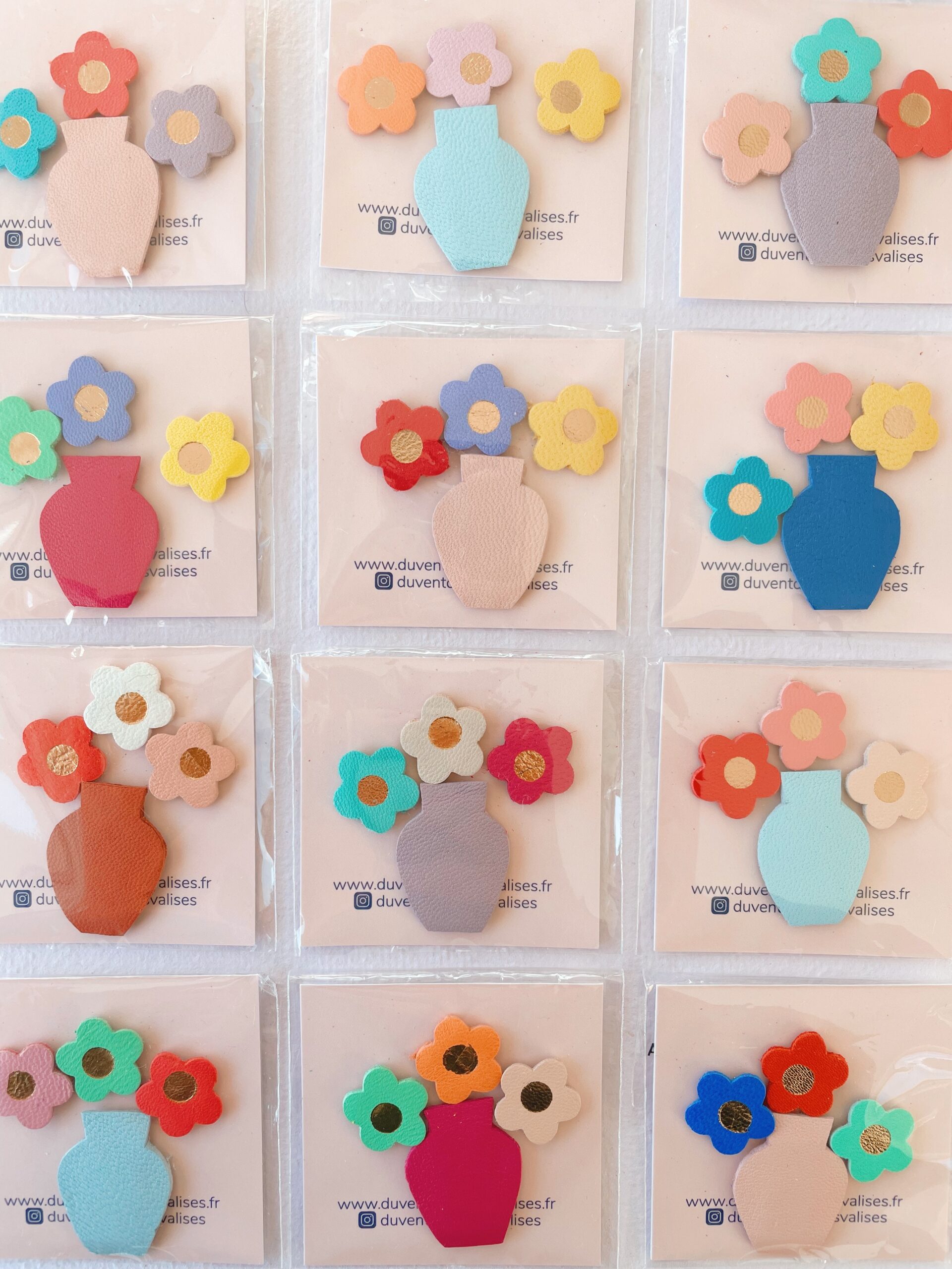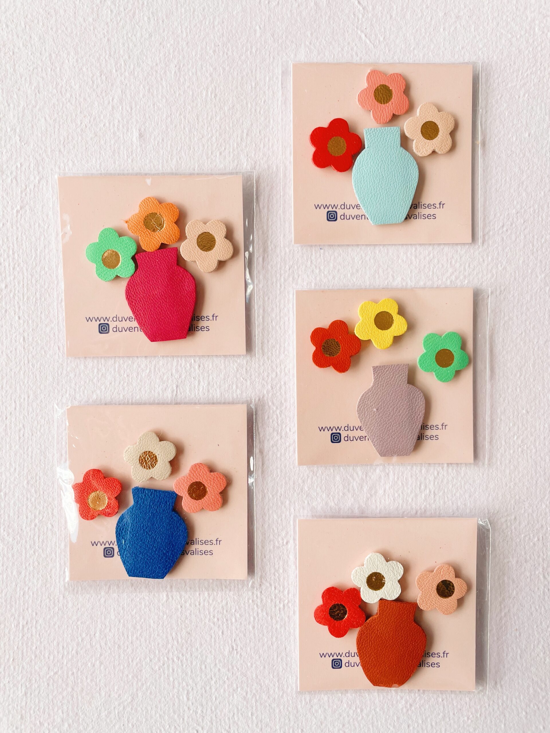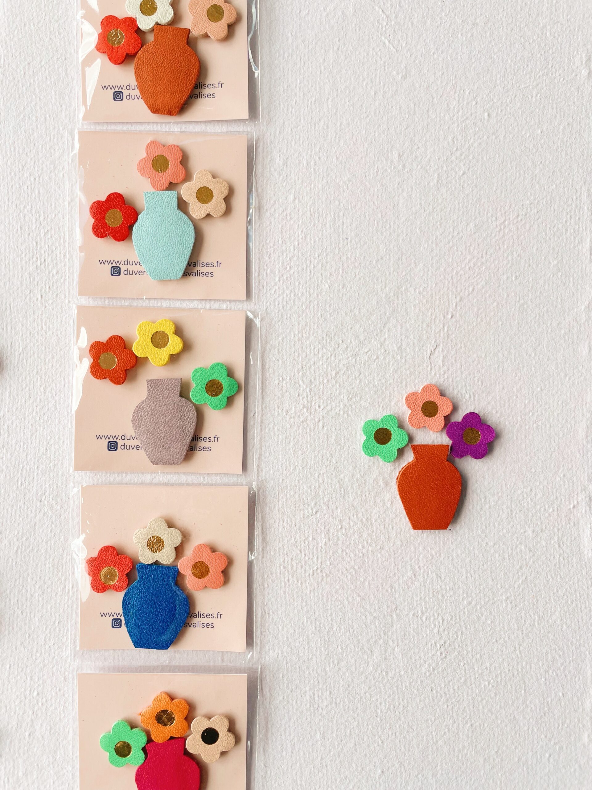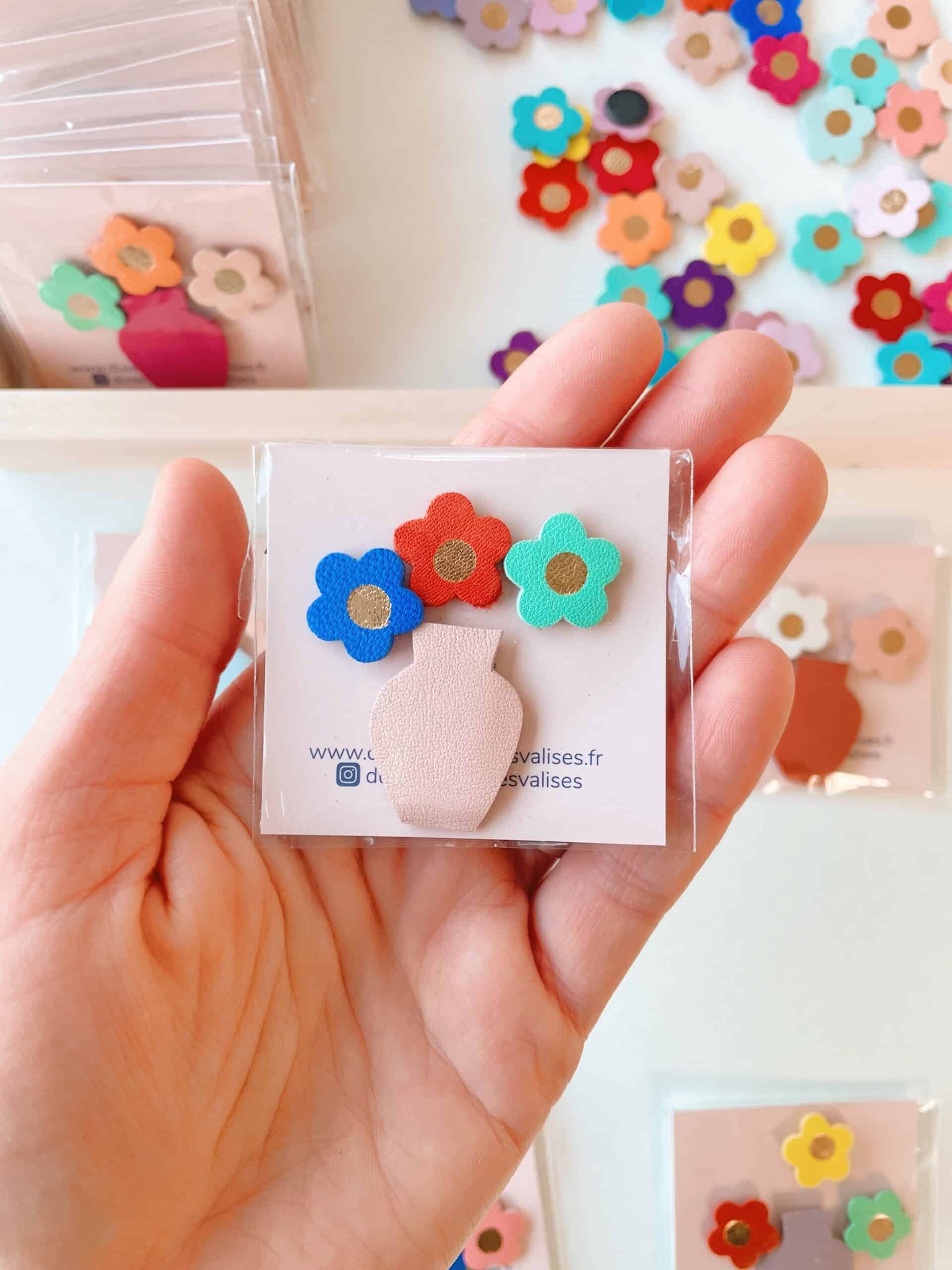 Ce joli bouquet est un adorable set de mini magnets avec son trio unique de fleurs colorées associé à un vase en édition limitée, c’est un accessoire aussi pratique que décoratif. Chaque set est confectionné de façon artisanale par mes soins dans mon atelier sur la terre des 2 caps (côte d’opale en France). Chaque motif est minutieusement découpé, les fleurs sont sublimées d’une touche de dorure à chaud, puis assemblé sur un support aimanté. Chaque pièce est donc unique. Ces mini magnets sont réalisés à partir des chutes de l’atelier ( elles mêmes issues d’excédents de tanneries françaises ou de stocks dormants et chutes d’origine européenne) dans une démarche responsable de valorisation des matières premières (upcycling). Comme il s’agit de chutes de cuir, les coloris peuvent varier légèrement.