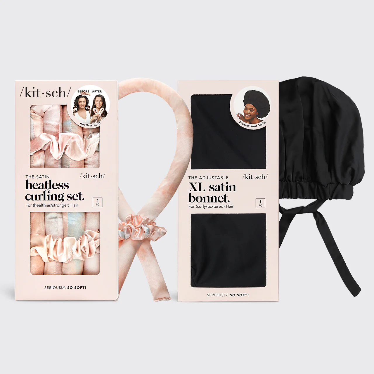 - Curling set includes a satin curling rod & two scrunchies that gently secure your hair.
