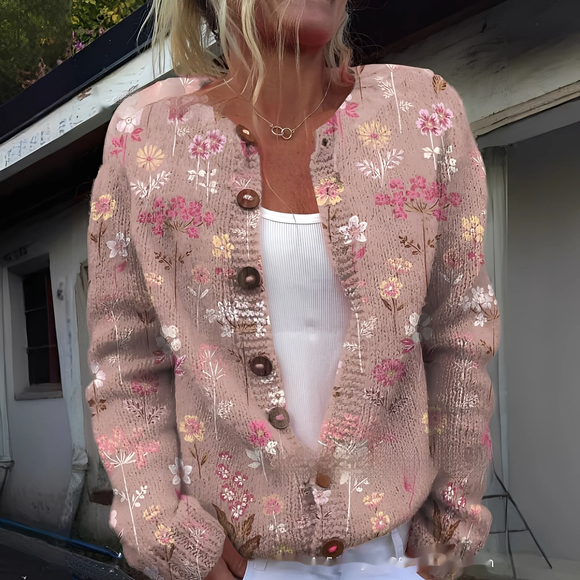 Le cardigan « Wilda » associe un beau motif floral avec une matière tricotée douce et chaude. Il procure un confort exceptionnel et maintient agréablement au chaud – idéal pour les jours frais de printemps, les soirées d’automne ou les moments de détente à la maison. Son design élégant s’accorde facilement avec des jeans, jupes ou robes, ajoutant une touche féminine à chaque tenue.