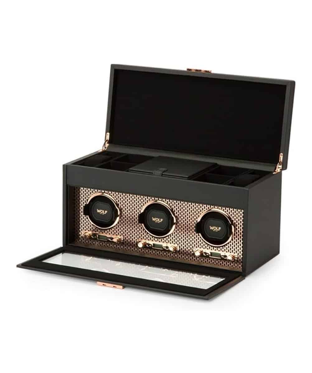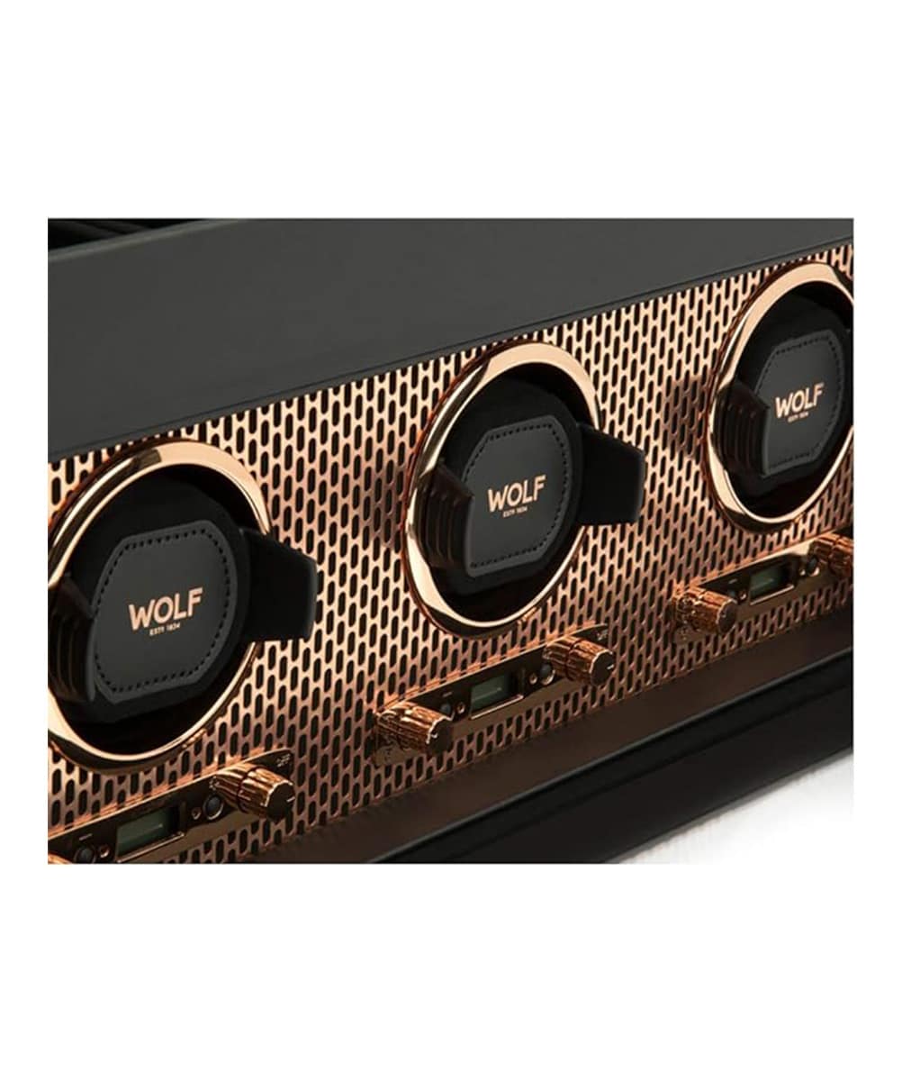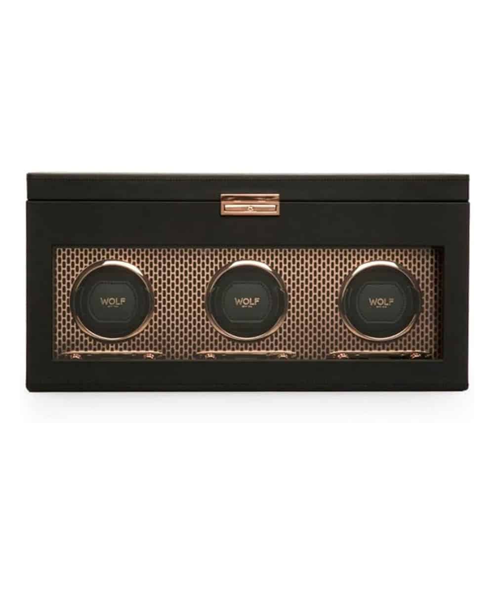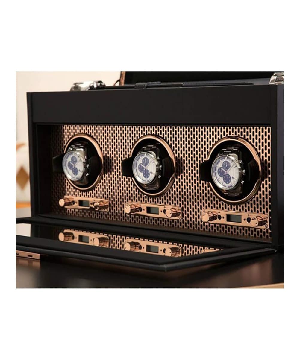 L’acier perforé découpé au laser, revêtu d’une couche de poudre et plaqué de cuivre, s’allie à des lignes épurées. AXIS offre un look moderne et audacieux pour la conservation de vos pièces d’horlogerie.