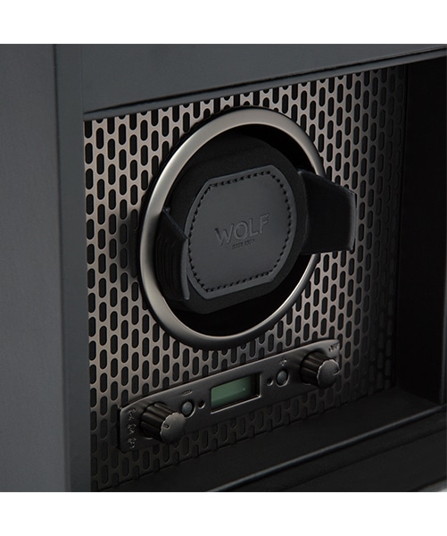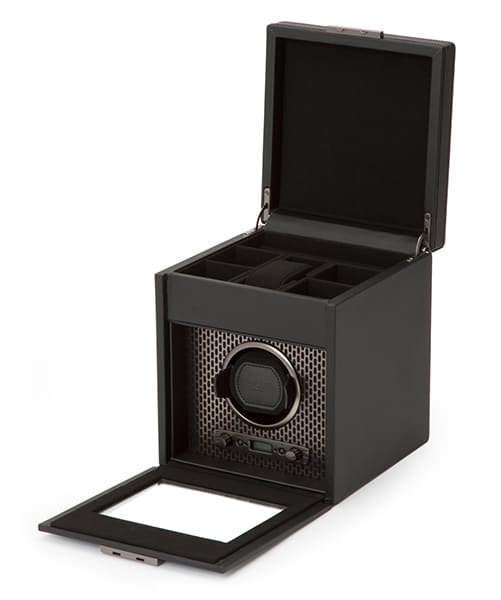 Acier perforé découpé au laser enduit de poudre fusionné avec des lignes épurées et épurées. AXIS propose un look moderne et audacieux pour la sauvegarde de vos montres. Notre technologie brevetée de comptage des rotations de l’axe de votre montre vous garantit des tours précis par jour. Luxe audacieux, design irréprochable, prenez AXIS pour un tour. Comprend un intérieur en microsuède, un couvercle en verre verrouillable, un écran LCD rétroéclairé, une quincaillerie au fini chrome mat et un module d’enroulement unique.