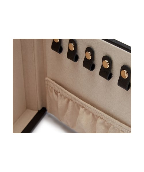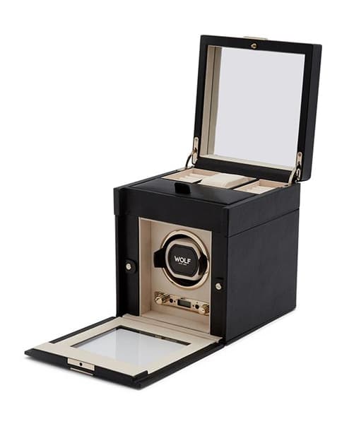 Charmante et sophistiquée, Palermo s’inspire de sa ville éponyme située à flanc de montagne au bord de la mer. Le Palermo Single Winder comprend 1 module d’enroulement WOLF breveté ainsi qu’un stockage de montre 1 pc, 10 rouleaux d’anneaux divisés en compartiments au-dessus. Il comprend également 10 porte-colliers à pression qui se trouvent de chaque côté. Rangez vos montres et bijoux préférés dans un somptueux écrin en cuir.
