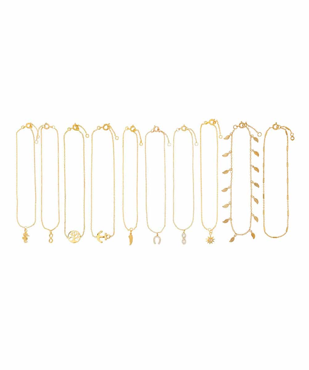 Le lot de 10 chaînes de cheville Remy sont en plaqué or et oxyde de zirconium.