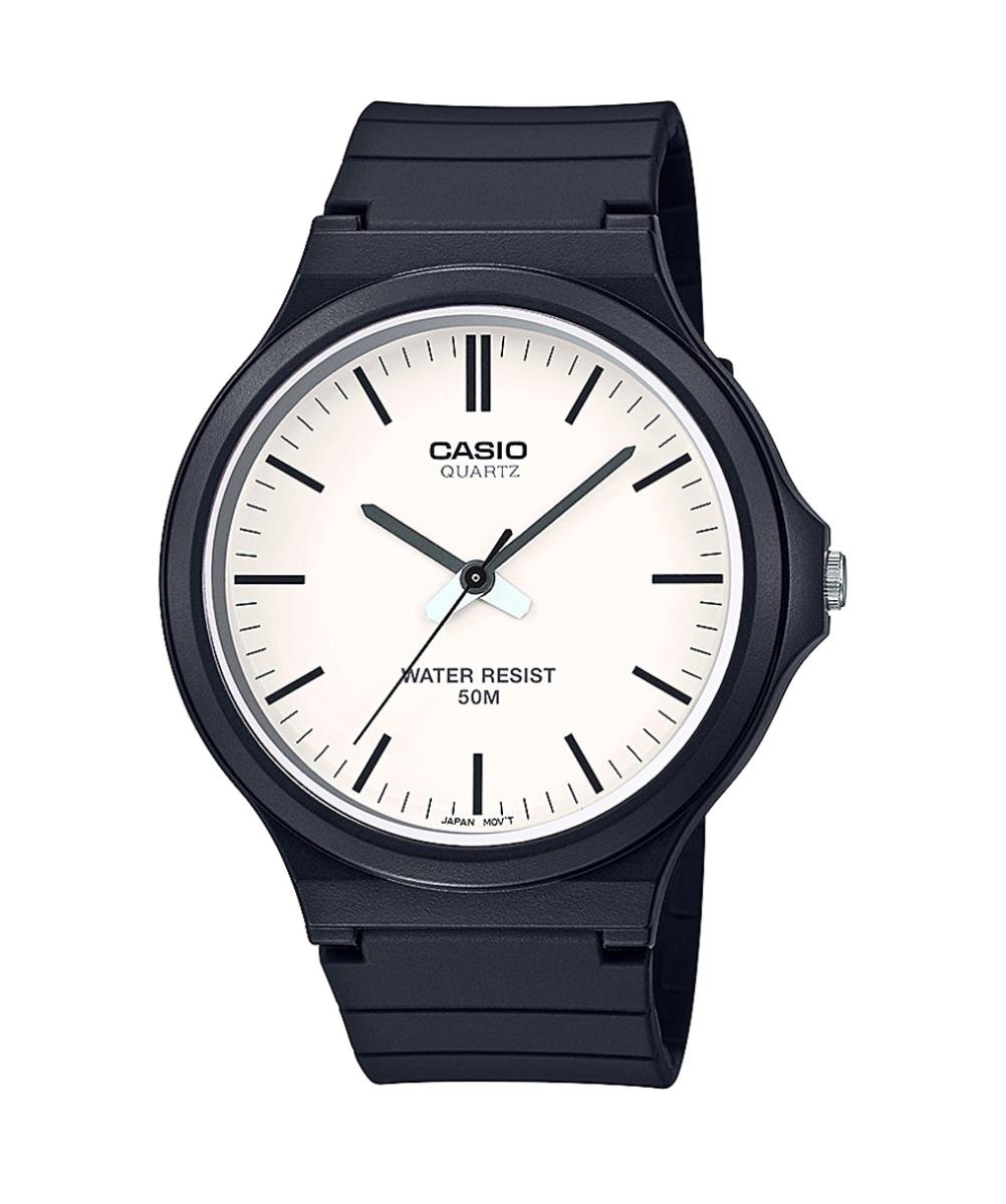La Casio MW-240-7EVEF incarne la simplicité élégante. Son design intemporel, souligné par un cadran blanc contrasté et des aiguilles noires, offre une lecture rapide et efficace de l’heure. Conçue pour un usage quotidien, elle s’impose comme un accessoire fiable et discret pour les hommes actifs.