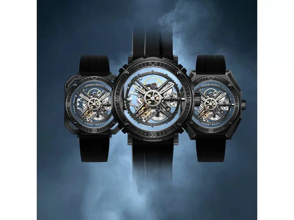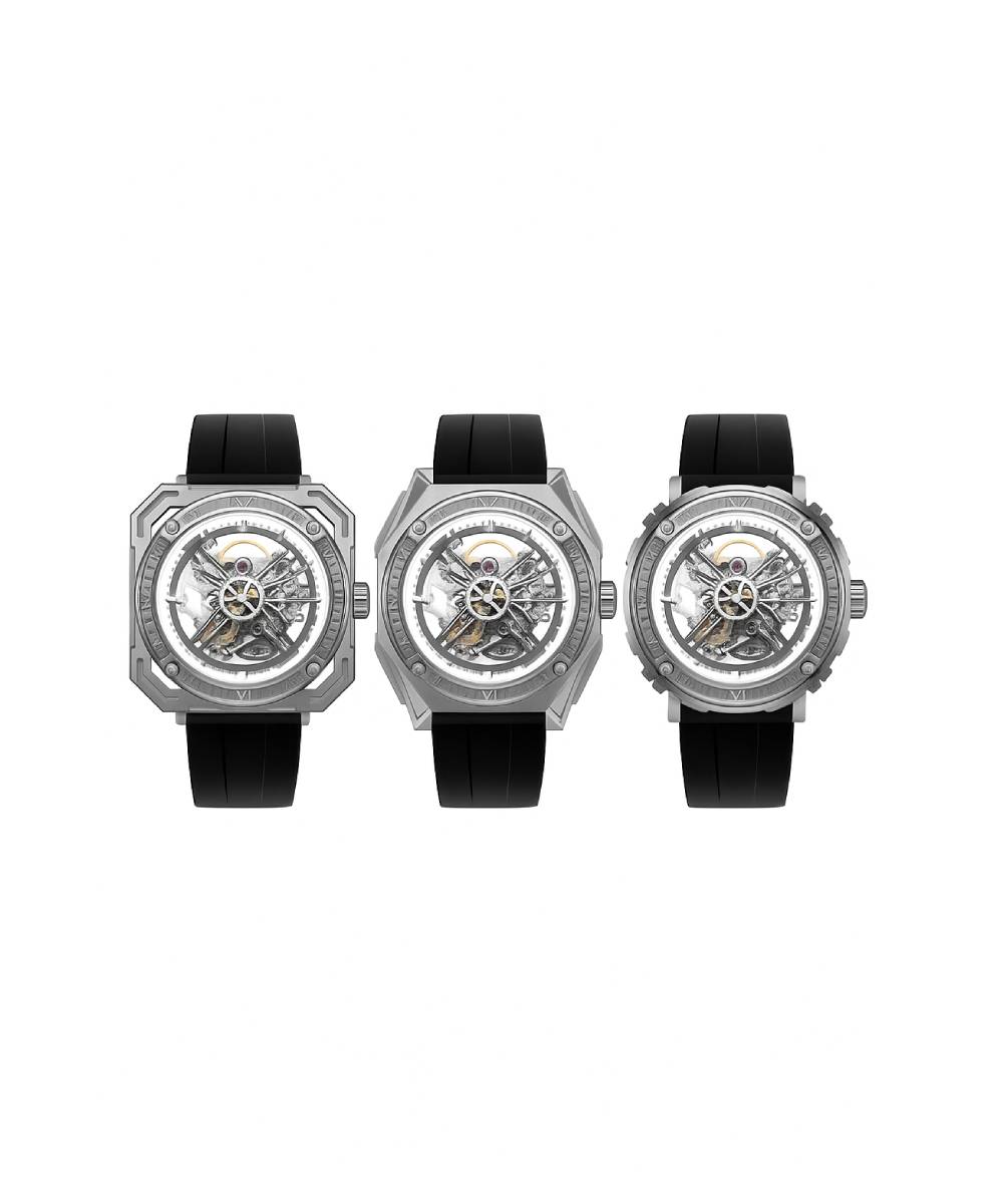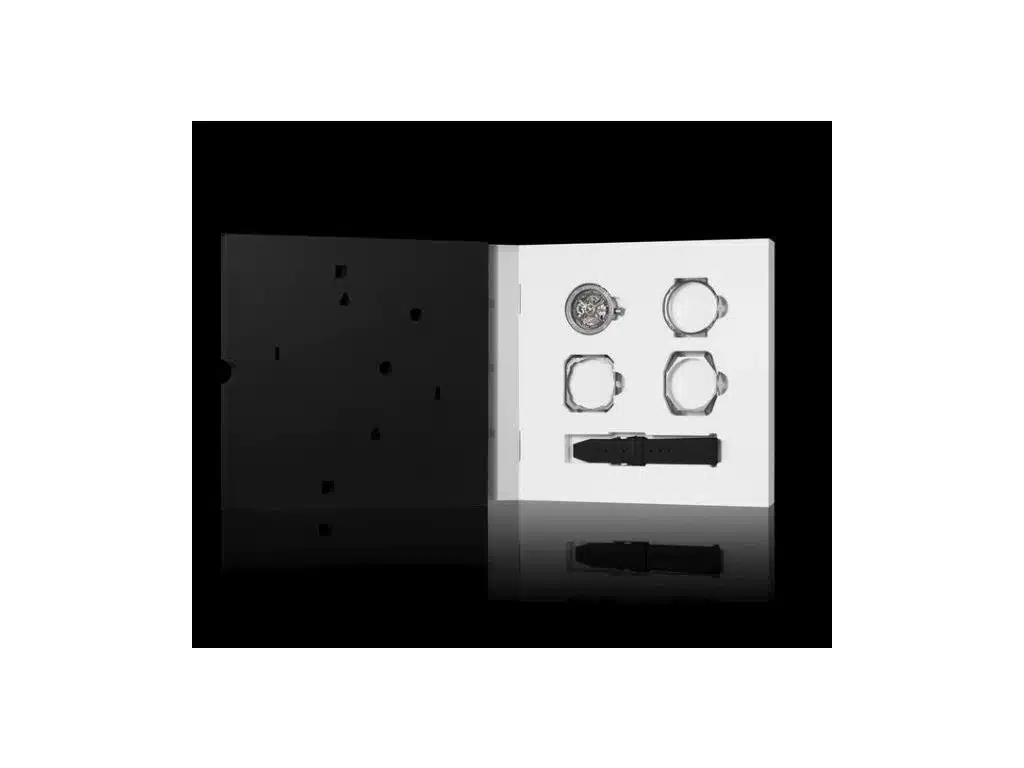 Ce modèle révolutionnaire intègre un concept unique de lunettes interchangeables — ronde, carrée et tonneau — toutes fabriquées en acier inoxydable 316L avec un revêtement DLC noir. Cette modularité permet de changer le style de la montre selon l’humeur ou l’occasion, tout en conservant une élégance contemporaine. Les aiguilles et index recouverts de Super-LumiNova assurent une lisibilité parfaite même dans l’obscurité, renforçant l’aspect technique et moderne du garde-temps.