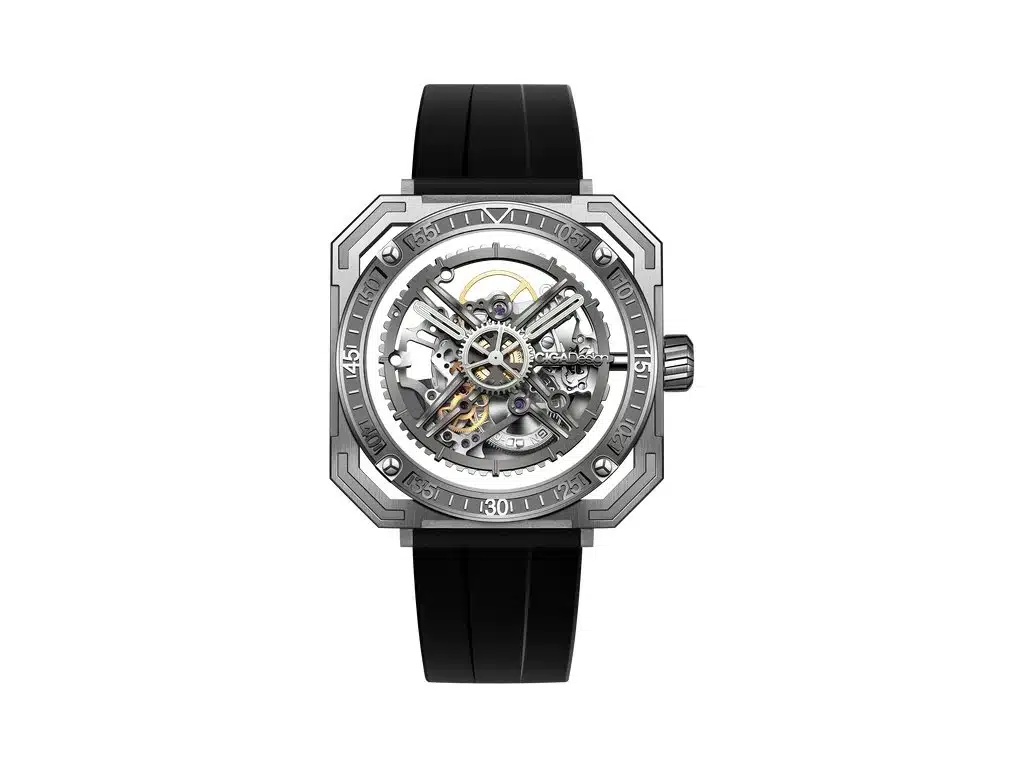 La CIGA Design Série M Magician Titanium M051-BB01-W6B repousse les frontières du design horloger avec une approche audacieuse et modulable. Conçue pour les hommes amateurs de mécanique et d’originalité, cette montre présente un boîtier rond en titane renfermant un cadran transparent qui dévoile un mouvement mécanique à remontage manuel. Chaque composant est visible, offrant une expérience visuelle fascinante, digne d’un véritable tour de magie.