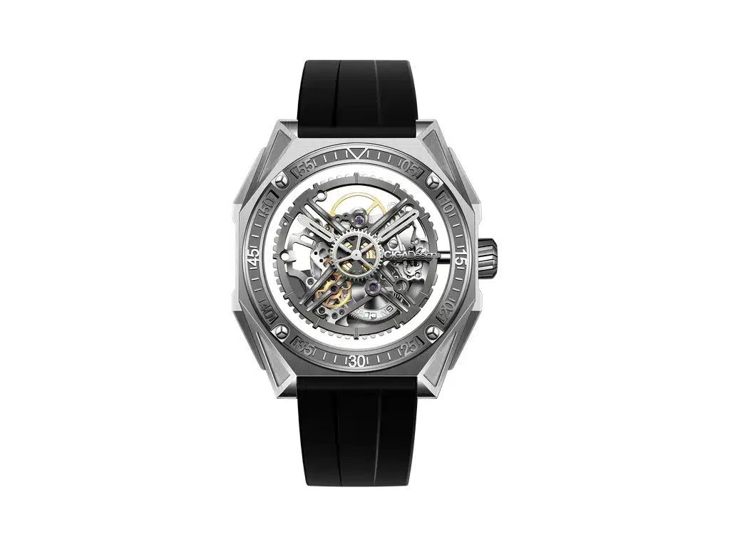 Protégé par un verre saphir trempé résistant aux rayures, le mouvement reste visible sous tous les angles. Le bracelet en fluoroélastomère noir, souple et durable, garantit un confort exceptionnel au poignet. Étanche jusqu’à 30 mètres, la Série M Magician combine la technologie, la personnalisation et l’art horloger dans un équilibre parfait. Une montre pensée pour l’homme moderne, audacieux et passionné par l’ingénierie du temps.