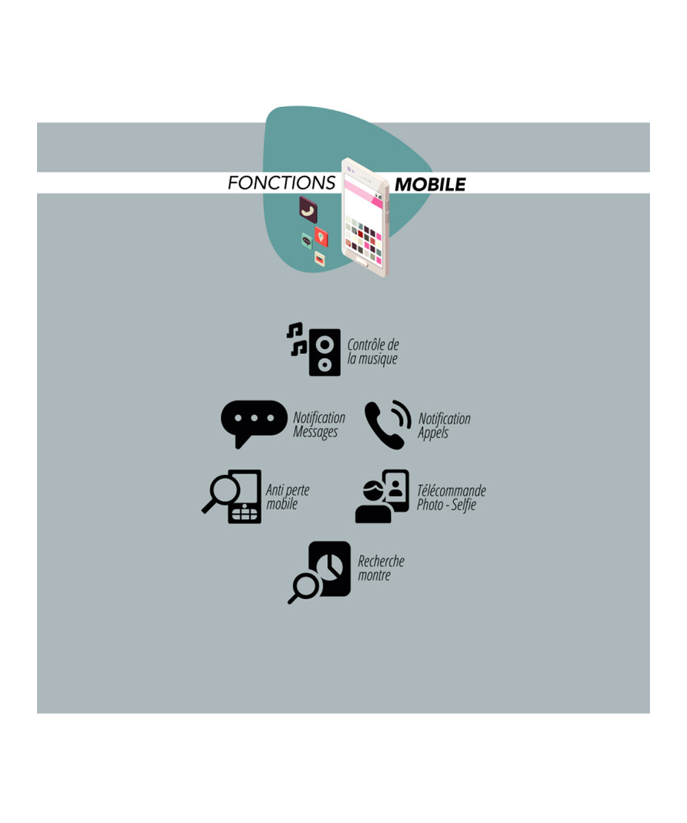 - Une fonction anti-perte pour le téléphone et une télécommande pour les photos et les selfies.