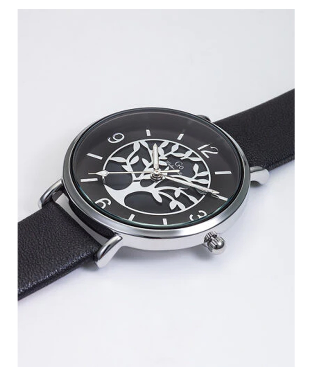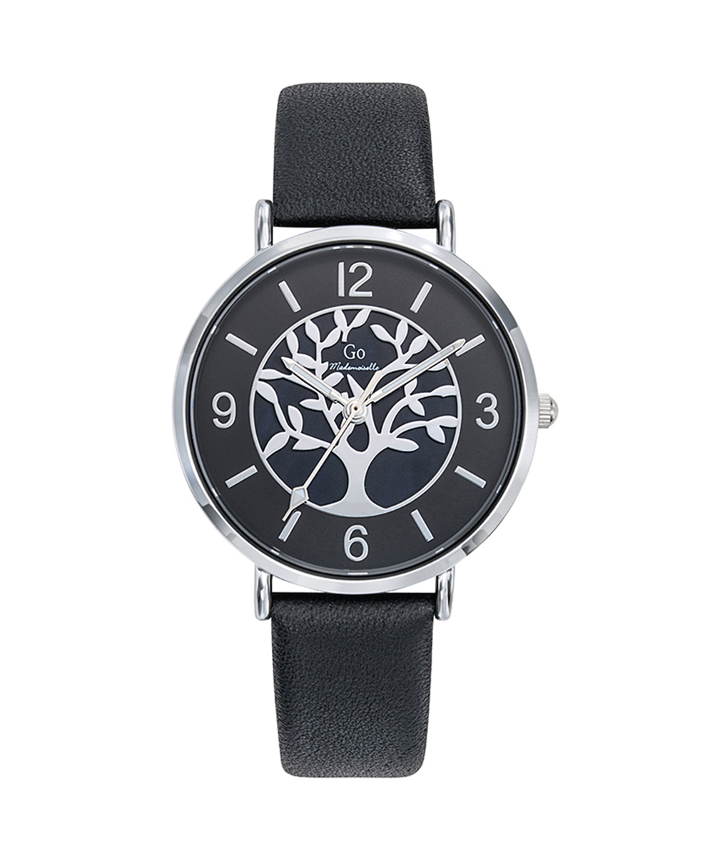 MONTRE GO MADEMOISELLE CUIR NOIR MOTIF ARBRE