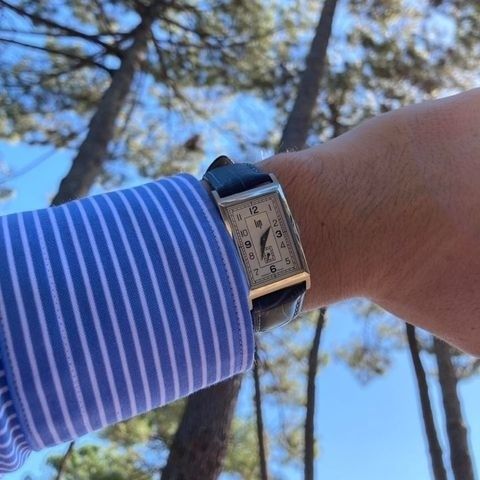Une fois portée, la boîte rectangulaire embrasse le poignet avec une grande aisance, permettant à la montre de glisser facilement sous une chemise cintrée ou un pull serré au niveau de l’avant-bras.
