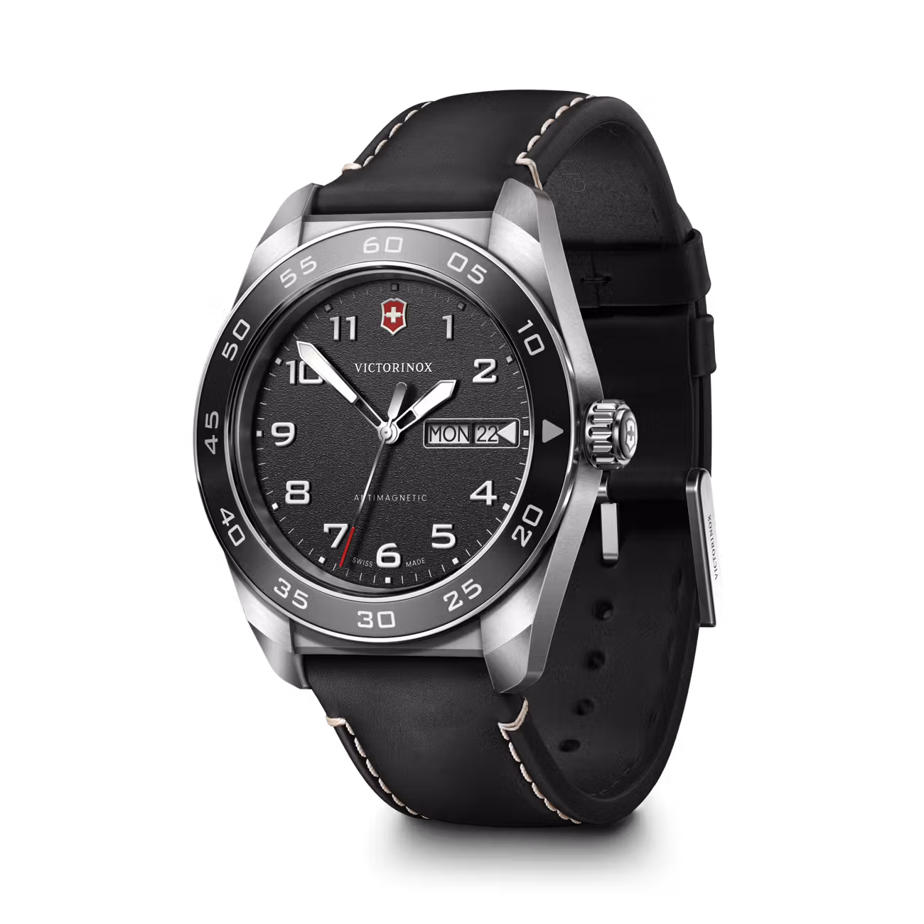 Équipée du mouvement quartz Ronda 517 avec fonction jour-date, cette montre assure une exactitude hors pair et une organisation calendaire optimale. Ses aiguilles surdimensionnées revêtues de SuperLuminova® et ses chiffres en relief offrent une lisibilité parfaite, de jour comme de nuit. Conçue pour une utilisation polyvalente, la Swiss Army Quartz s’adapte à chaque situation grâce à sa technicité novatrice et sa simplicité fonctionnelle.