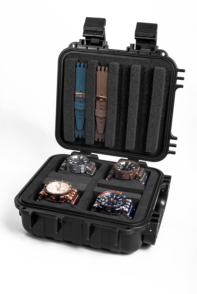 Enfin, on appréciera également les deux bracelets fournis, un « Oily croco » et un bracelet Silicone, idéal pour la plongée…