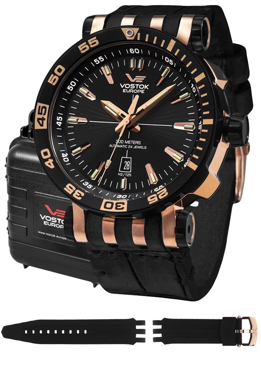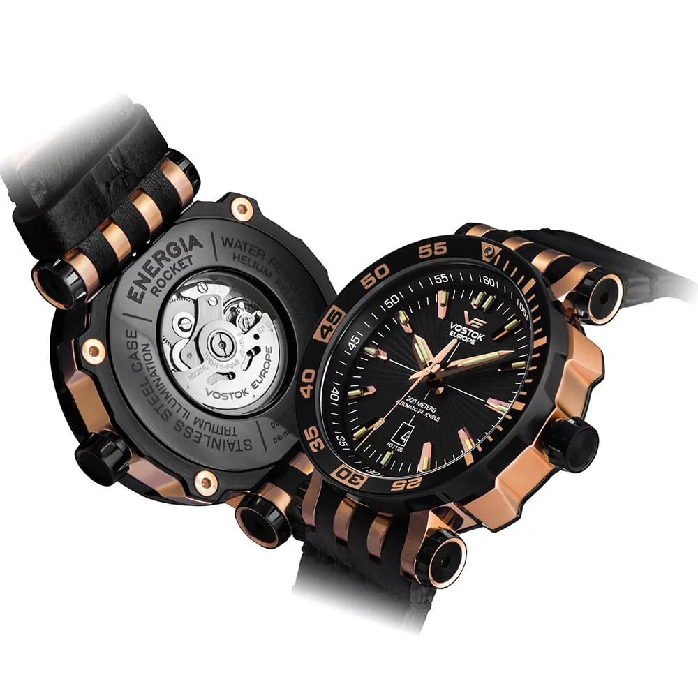 Cette Vostok-Europe Energia Rocket 575B281 est un concentré de technologie mécanique adossé à un style et à un design unique. Avec un boitier robuste de 16 mm d’épaisseur sur 48 mm de diamètre, et une étanchéité exceptionnelle de 300 mètres, ce garde-temps fera le plaisir des amateurs d’horlogerie fine… Et de plongée sous-marine.