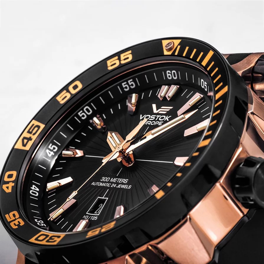 La nuit venue, on appréciera l’extrême lisibilité de la Vostok-Europe Energia apportée par le Tritium, un composant non toxique, rendant index et aiguilles visibles en toute condition.