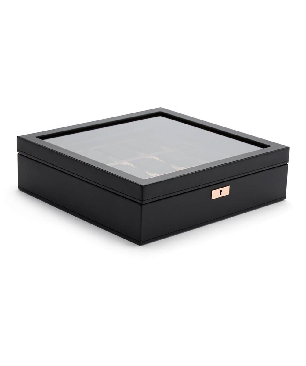 L’acier perforé découpé au laser, revêtu d’une couche de poudre et plaqué de cuivre, s’allie à des lignes épurées. AXIS offre un look moderne et audacieux pour la conservation de vos pièces d’horlogerie.
